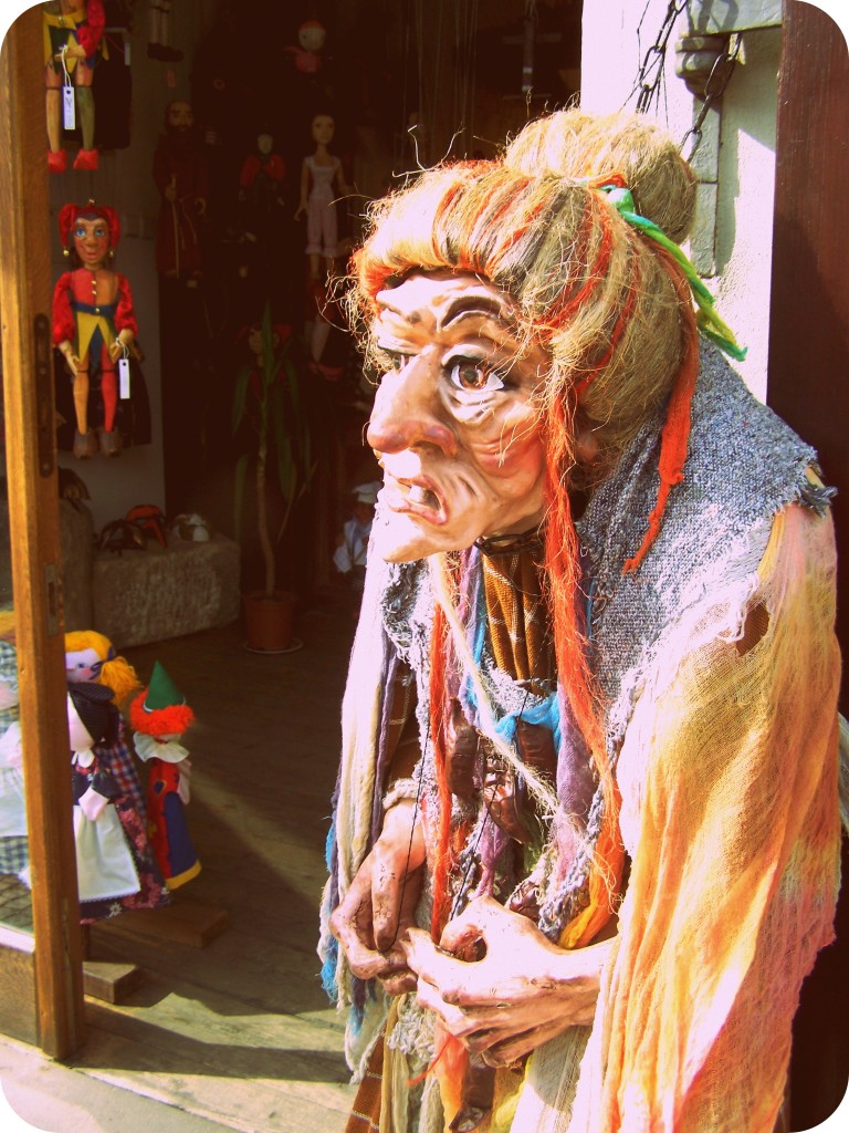 One of my favorite things I came across (other than the colorful buildings and the art), were the handmade crafts. Stores display their goods on the sidewalk, and this shop caught my eye immediately. I loved the selection of puppets that took me back in time. And, of course, this woman standing guard of the shop.