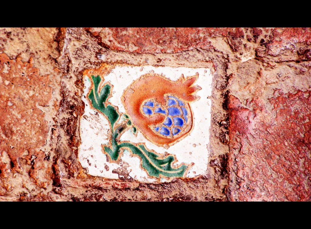 La Alhambra’s intricate architecture is complemented by the remaining frescoes and original art. This flower can be found on the wall in one of the rooms.