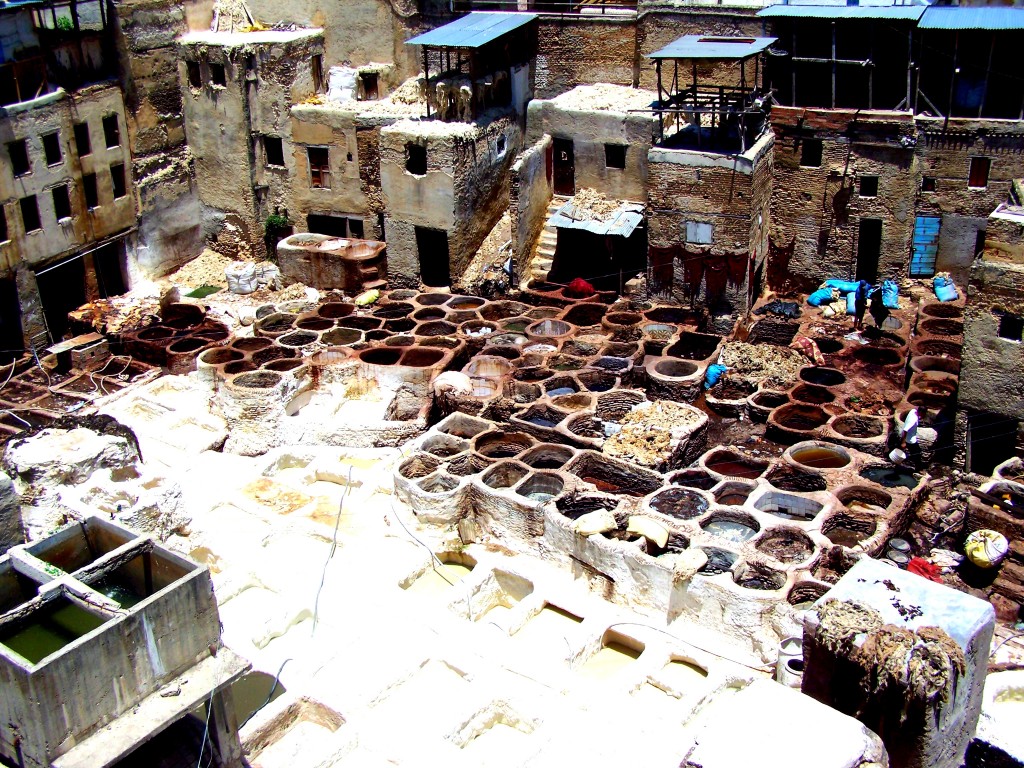 Here, vats are filled with pigeon poop and veggie dyes to prepare the skin for leather production. On a hot summer day, you can smell it across the medina.