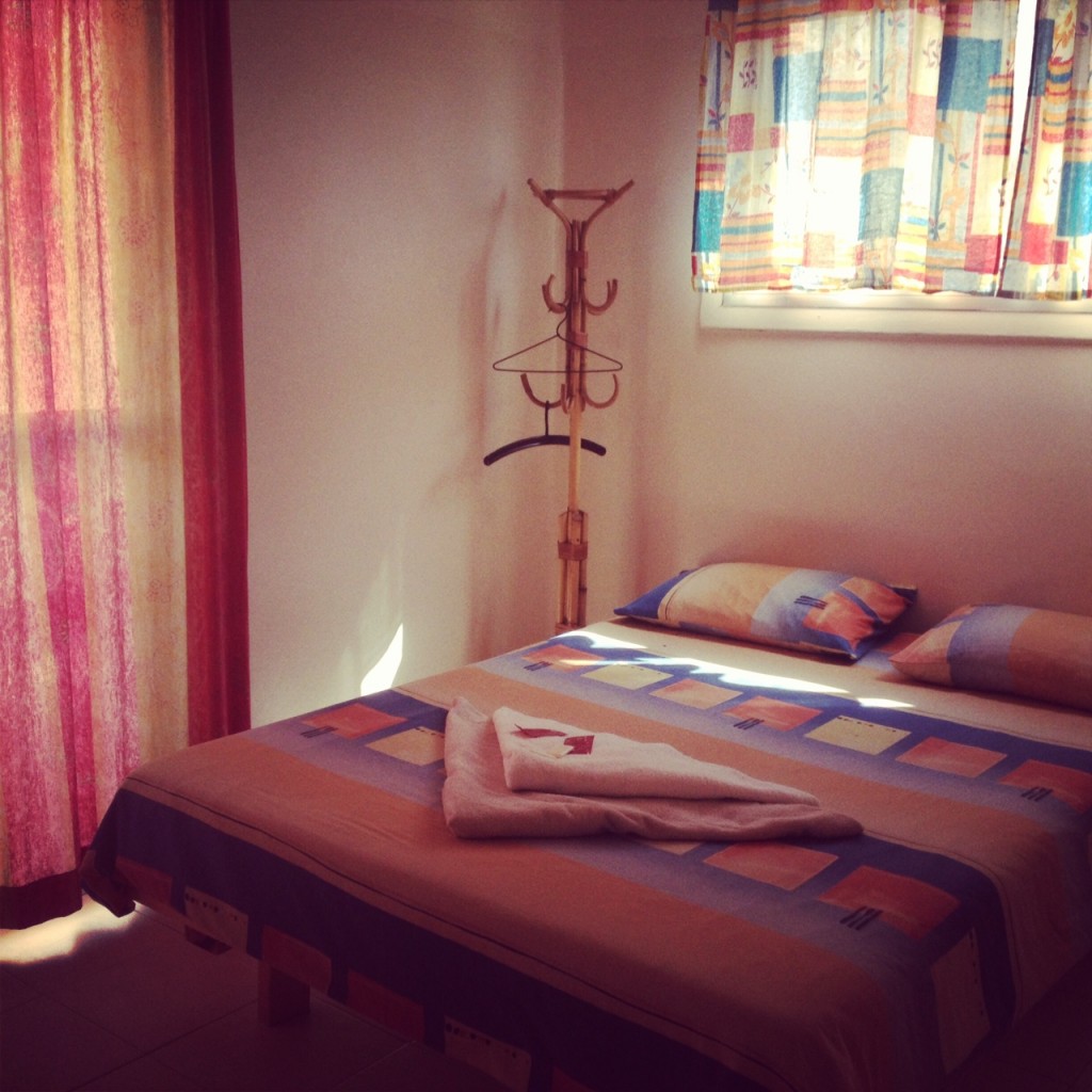 I’ve got a private room for three nights — my first truly private room ever — and when I open the door I love it. In the late afternoon, the sun casts a golden glow through the multi-colored curtains opening up to a private balcony. A. Private. Balcony. Granted, when I step outside, I don’t see the Mediterranean, but I still love the fact that I can step outside without having to haul it down to the main floor.