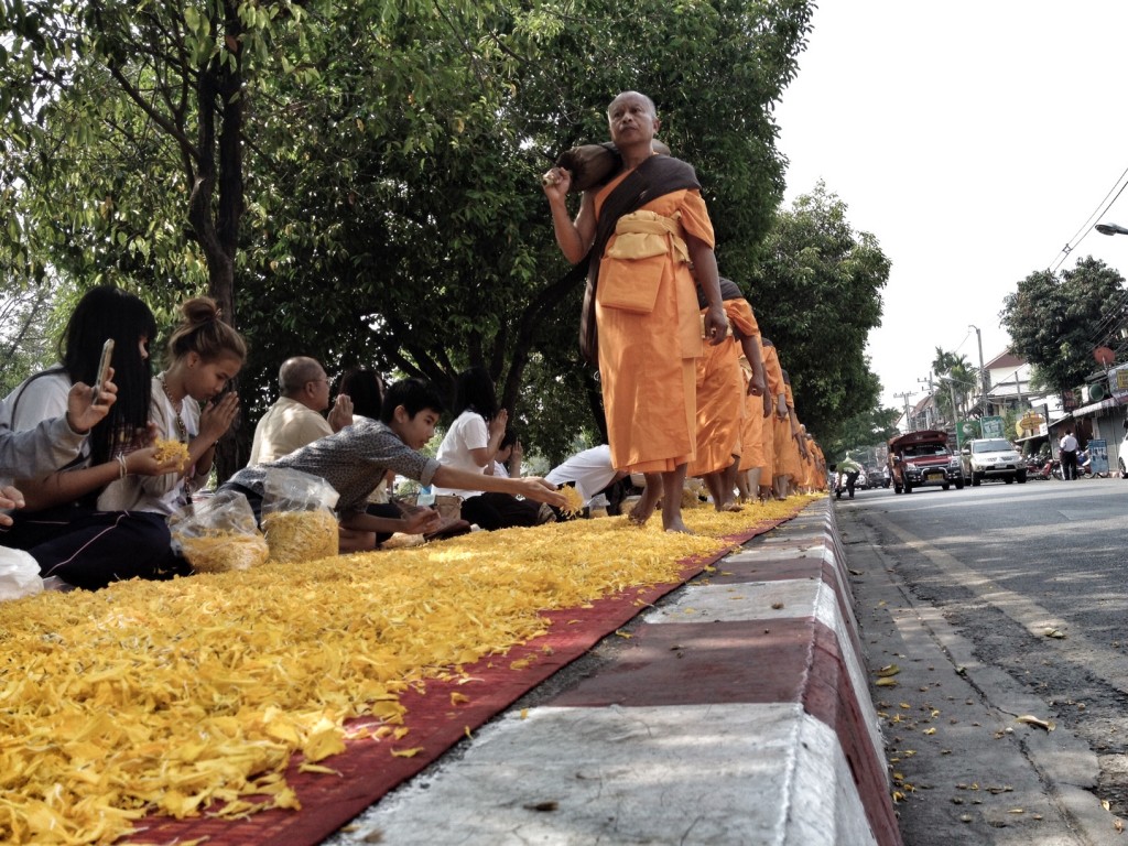 Living in Chiang Mai, I am constantly treated to spectacular visual beauty, thanks to the hundreds of temples and religious activities which regularly occur here. Any given morning, en route to work, I get to see people praying to monks and offering alms to them to bring back to their respective temples.