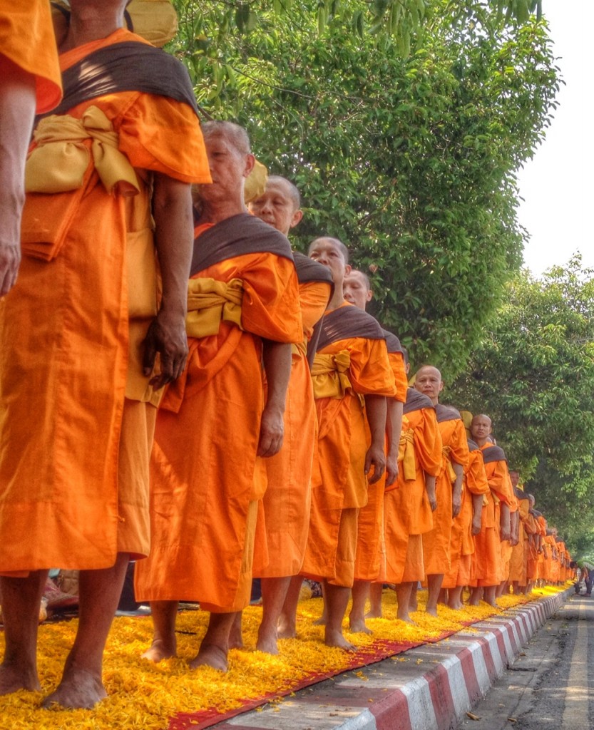 There is something quite awe-inspiring seeing 500 monks, clothed in orange, walk a top a sea of yellow petals while people pray. Truly a beautiful experience.