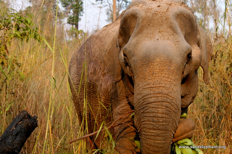 Medo was one of the first elephants I fell in love with when I volunteered with ENP in Sept. 2011. Her story broke my heart. She had broken her ankle in illegal logging, and then her back was broken when a bull aggressively mounted her in forced breeding. It took Lek five months to rescue this 30-year-old girl. On this day, I was with her and some VIP guests as she crunched down on some watermelon. There is nothing sweeter than the sound of an elephant chomping on a snack.