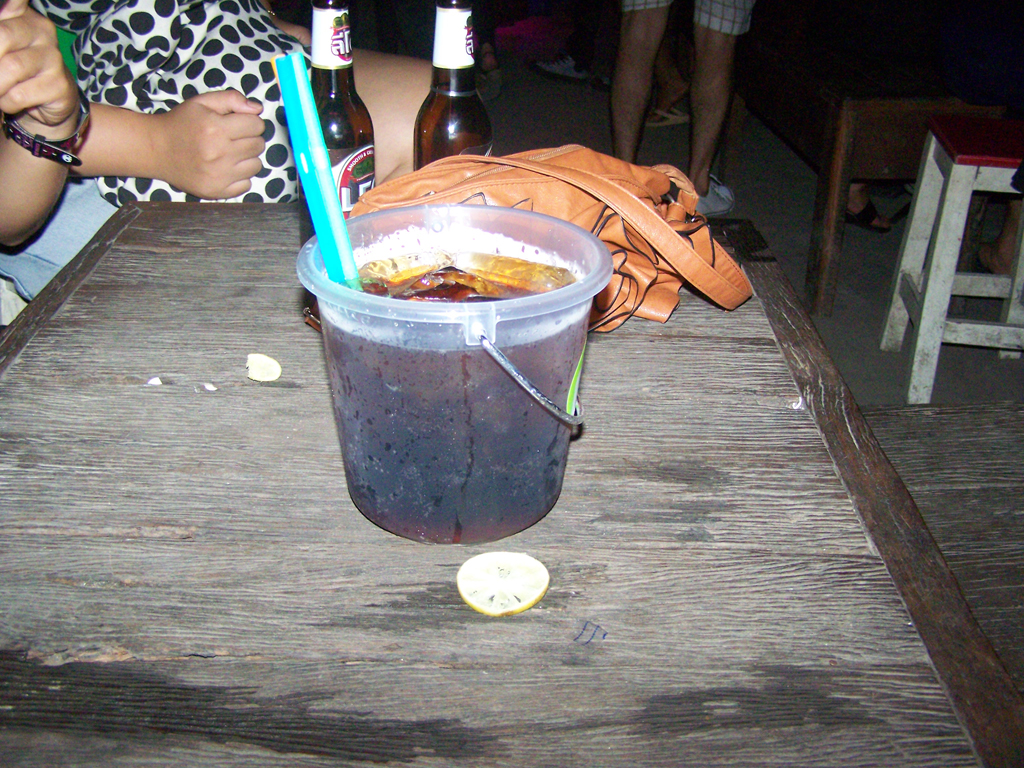 “Let’s go get dinner and wait out the rain,” I suggested as the water began to beat down on us, prompting the vendors to throw sheets of plastic on their goods, and the crowd to pop up even more umbrellas, threatening to poke out eyes.